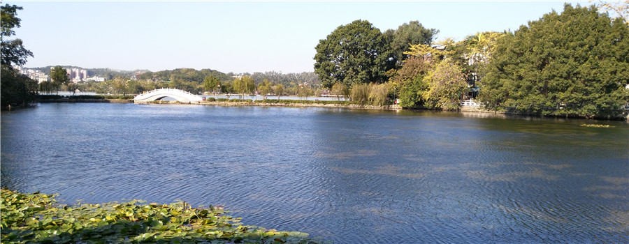 南南湖水面約12萬平方米,水深1.6 m 至2.2 m 之間。由于葉綠素和懸浮物濃度高,南湖水色常年為黃綠色,透明度低,感觀很差。屬劣V類水質。